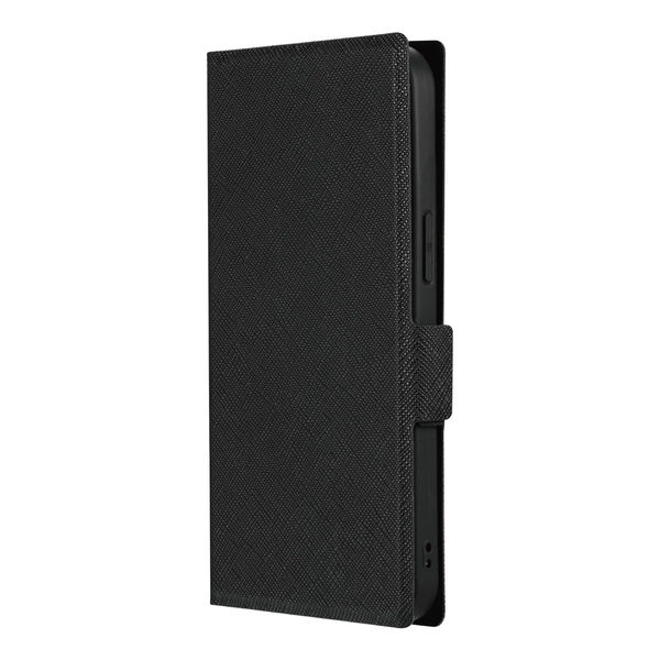 スリムで傷つきにくいサフィアーノ調の手帳型ケース/耐衝撃TPUケース採用/すぐ取り出せて嵩張らないカード収納ポケット(1枚)/動画視聴に最適なスタンド機能