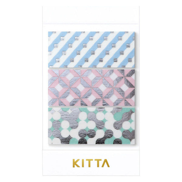 | 商品の特徴 | 名刺サイズでコンパクトに持ち運べるマスキングテープKITTA(キッタ)。表紙を折りたたむとカードサイズになるので、手帳のポケットやペンケースに入れてもかさばらず持ち歩けます。3種類の柄が各10枚入り。カット済みなのではさみを使わず、裏紙をはがすだけですぐに使えます。ラッピングや手帳のアレンジもかんたんに可愛くできます。 | ||
