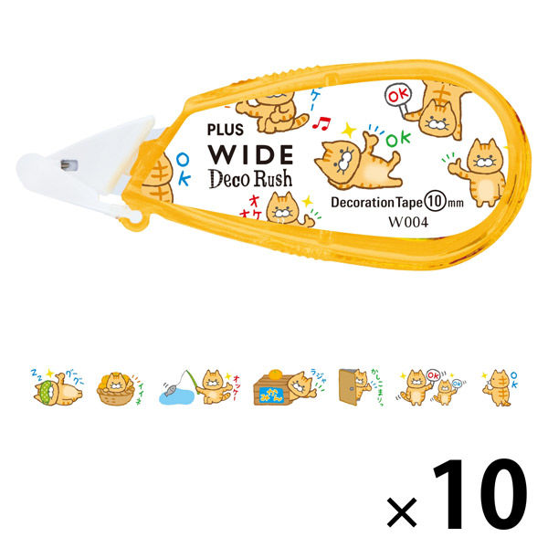 プラス デコレーションテープ ワイドデコラッシュ OKネコ 49134 10個