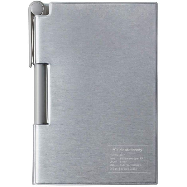 | 商品の特徴 | メタリックな質感がクールでおしゃれなペン付きメモです。メモは使いやすい2mm方眼。耐久性のあるカバーで持ち歩きに便利。ペンは滑らかな書き味と約5,000m筆記可能な耐久性が魅力。同系色のカラーを纏ったCoolなペン付きのA6サイズの2mm方眼メモ帳。耐久性と機能性はそのままに、先鋭的なデザインにアップグレードしたメモ&ボールペン。メタリック調カバー、裏生地、ペンの全てのパーツを敢えて同系色で構成しました。一見文具らしからぬおしゃれなビジュアルはkleid(クレイド)ならでは。 | ||