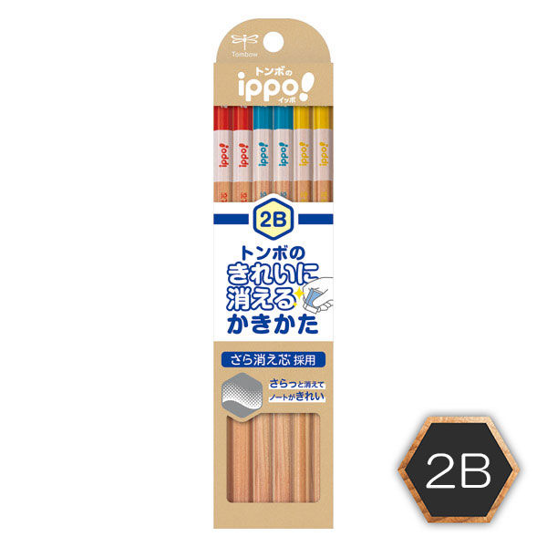かきかたえんぴつ きれいに消える ippo(イッポ) 2B 六角軸 ナチュラル KB-KSKN01-2B 1ダース(12本入) トンボ鉛筆