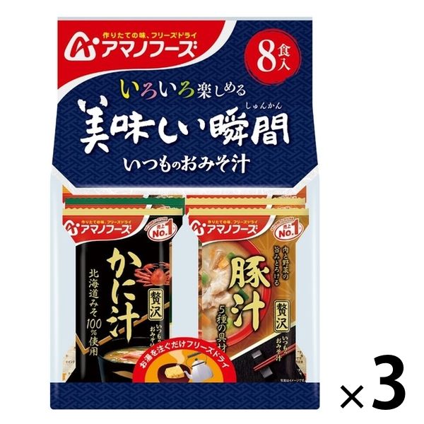 | 商品の特徴 | アマノフーズのフリーズドライみそ汁の中でも人気のシリーズである「いつものおみそ汁」から計8種の人気商品を集めました。いろいろな味をお試しいただき、アマノフーズ商品の魅力を再発見していただけるセットです。 | ||