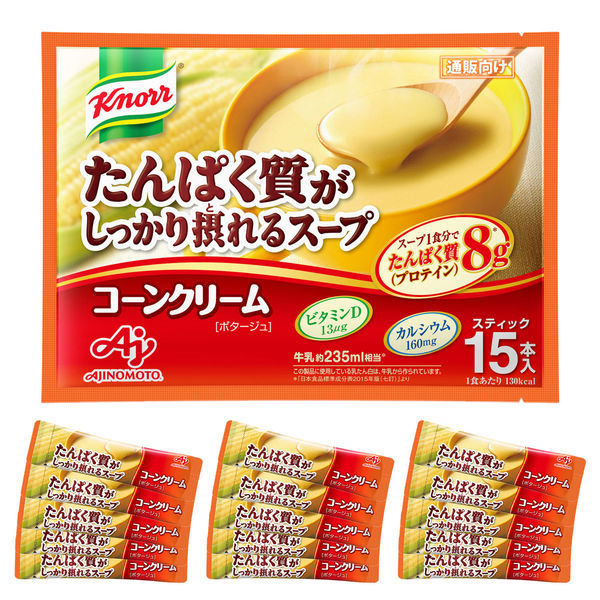 クノール たんぱく質がしっかり摂れるスープ コーン スティック 15本入 1袋 プロテイン タンパク質 カルシウム ビタミン(わけあり品)