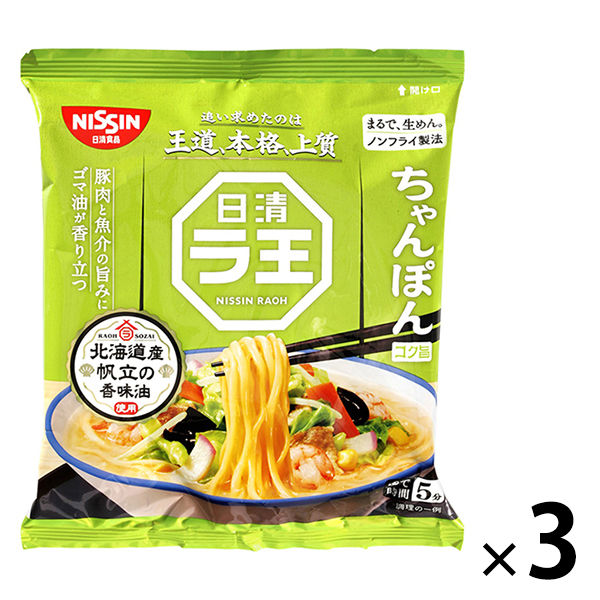 | 商品の特徴 | 厳選素材『北海道産帆立の香味油』の旨みがつまったノンフライのインスタントラーメン!”こだわり”がラ王をここまでうまくした。新ラ王3食パック、さらに美味しくなって新登場!即席麺(即席めん)、袋麺、袋らーめんは買いだめがおすすめ。カップ麺(カップめん)と一緒にストックしておくと便利!景品プレゼントやノベルティ用としてもイベントや販促などで便利。旅行・トラベル、防災食、非常食、備蓄・保存食、おうち時間、巣ごもり消費、お手軽昼食、間食、おやつ、夜食などにあると便利。インスタント麺。即席麺。日清食品。箱買い。 | ||