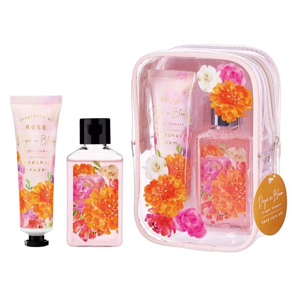 | 商品の特徴 | クリア素材と大きな花柄が入ったポーチに、華やかなローズ香るハンドケアアイテムが入ったセット。伸び良くしっとりうるおうハンド&ネイルクリームと、携帯に便利なやさしい洗い上がりのミニハンドソープは贈り物としても喜ばれます。 | ||