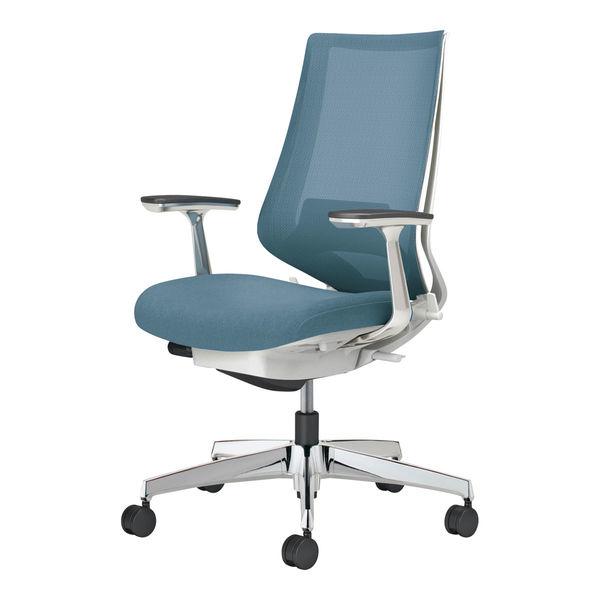 姿勢や体格差に合わせて調節可能なメカニズムを搭載。多様なワークシーンをサポートする高機能チェアー。二重フレーム構造の背もたれにより、前傾から後傾までの姿勢をサポート。