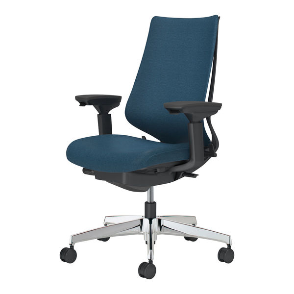 姿勢や体格差に合わせて調節可能なメカニズムを搭載。多様なワークシーンをサポートする高機能チェアー。二重フレーム構造の背もたれにより、前傾から後傾までの姿勢をサポート。