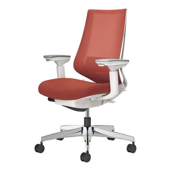姿勢や体格差に合わせて調節可能なメカニズムを搭載。多様なワークシーンをサポートする高機能チェアー。二重フレーム構造の背もたれにより、前傾から後傾までの姿勢をサポート。