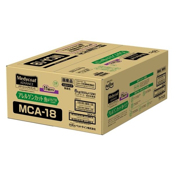 メディコートアドバンス アレルゲンカット 魚&えんどう豆たんぱく11歳から 国産 6kg(500g×12袋入)ペットライン ドッグフード