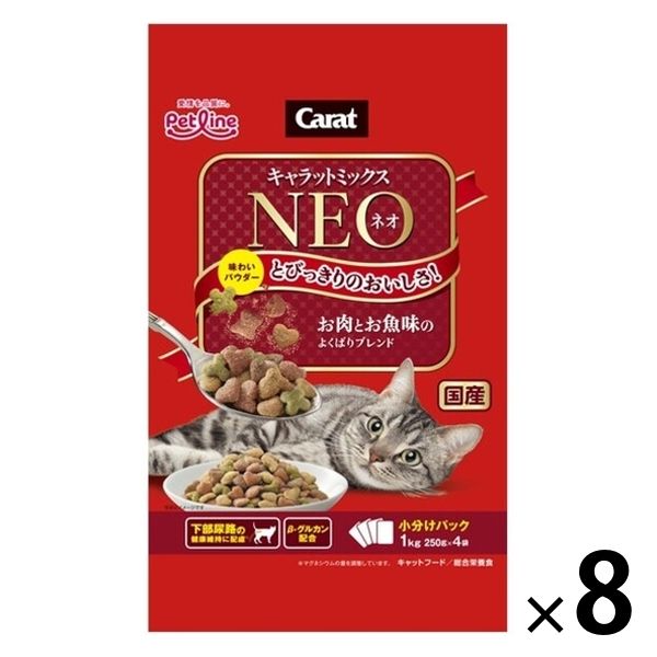キャラットミックス ネオ お肉とお魚味のよくばりブレンド 国産 1kg(250g×4袋入)8袋 ペットライン キャットフード