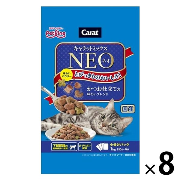 キャラットミックス ネオ かつお仕立ての味わいブレンド 国産 1kg(250g×4袋入)8袋 ペットライン キャットフード