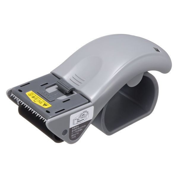 | 備考 | 【返品について】ご購入の際は、ご利用ガイド「返品・交換について」を必ずご確認の上、お申込みください。※テープは別売りです。※替刃は別売りです。※適合テープ:OPPテープ、クラフトテープ※テープ適合サイズ:テープ幅=最大50mm、テープ外径=最大125mm、テープ芯内径=3インチ(約75mm)※ご使用中、不意にハンドルが大きく開いてしまわないよう、少し開いたところでロックがかかる構造になっています。テープのセット時や交換時にハンドルを大きく開きにくいときは、以下の手順をお試しください。まず、ハンドルを上に開き、少し開いたところでロックが機能して一度止まります。その状態から、ロック部分側にハンドルを軽く押すと、ロックがはずれます。そのまま大きく上に開いてください。 | ||