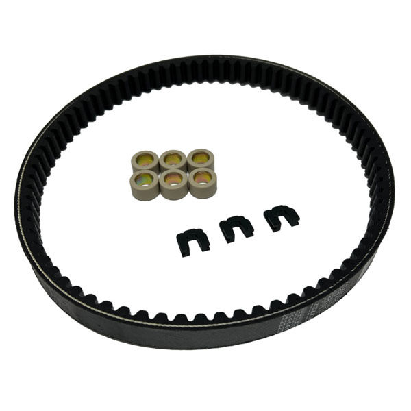 - 【MADE IN JAPAN】 100%国内生産の高品質ドライブベルトに、ドライブベルト交換時、同時に点検交換が必要な、スライドピースとウエイトローラーの3点をキットにしています。 コダワリの品質は、Vベルトのロングライフを実現。スクーターの駆動系の命とも言えるドライブVベルトは安心して使用して頂ける車種専用設計。(国内基準JASO規格合格) ・スクーターの駆動系は 5000km~58万キロで点検し、劣化、消耗した部品は交換が必要です。 プーリー、ウエイトローラー、スライドピース、トルクカム等を点検し、部品交換することで、短期でのトラブルを防ぎ、ドライブベルトの性能がさらに発揮できます。 ・スクーターの駆動系は沢山のパーツから構成されているため、互いの部品が正常に動くことで各部品の耐久性、寿命、性能が向上します。ドライブベルト交換時は駆動系の点検を行い、走行距離、車種に合ったメンテナスをお勧め致します。
