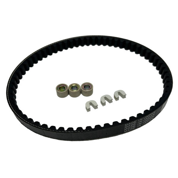 - 【MADE IN JAPAN】 100%国内生産の高品質ドライブベルトに、ドライブベルト交換時、同時に点検交換が必要な、スライドピースとウエイトローラーの3点をキットにしています。 コダワリの品質は、Vベルトのロングライフを実現。スクーターの駆動系の命とも言えるドライブVベルトは安心して使用して頂ける車種専用設計。(国内基準JASO規格合格) ・スクーターの駆動系は 5000km~90万キロで点検し、劣化、消耗した部品は交換が必要です。 プーリー、ウエイトローラー、スライドピース、トルクカム等を点検し、部品交換することで、短期でのトラブルを防ぎ、ドライブベルトの性能がさらに発揮できます。 ・スクーターの駆動系は沢山のパーツから構成されているため、互いの部品が正常に動くことで各部品の耐久性、寿命、性能が向上します。ドライブベルト交換時は駆動系の点検を行い、走行距離、車種に合ったメンテナスをお勧め致します。