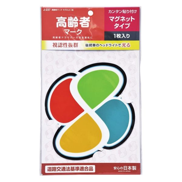 | 商品の特徴 | 高齢者ドライバーの安全運転に。車外用マグネットタイプ。後続車のヘッドライトで光る反射タイプ。 | ||
