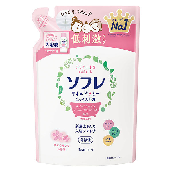 ソフレ マイルド・ミー ミルク入浴液 和らぐサクラの香り 詰め替え 600mL 保湿タイプ 1個 アース製薬