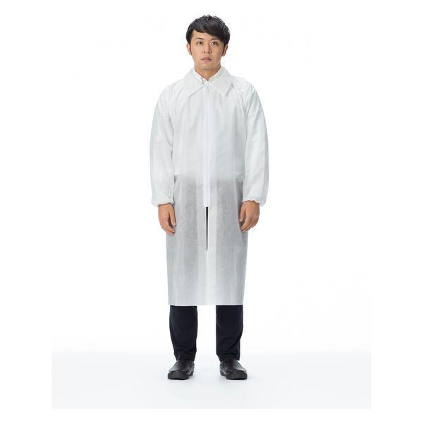 1袋10着入り!使いきりタイプの不織布白衣。工場見学や汚れ防止におすすめ。リーズナブルな使いきり白衣。