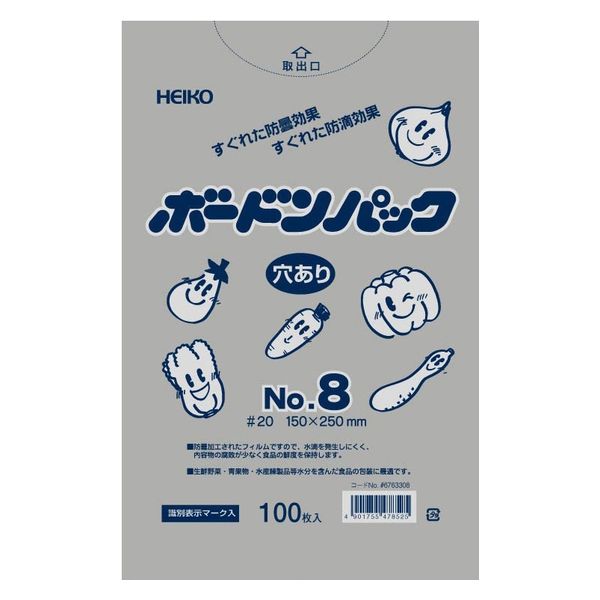 本商品:シモジマ HEIKO(ヘイコー)ボードンパック #20 No.8 穴あり プラマーク入り袋 1セット(1袋(100枚入)×50)
