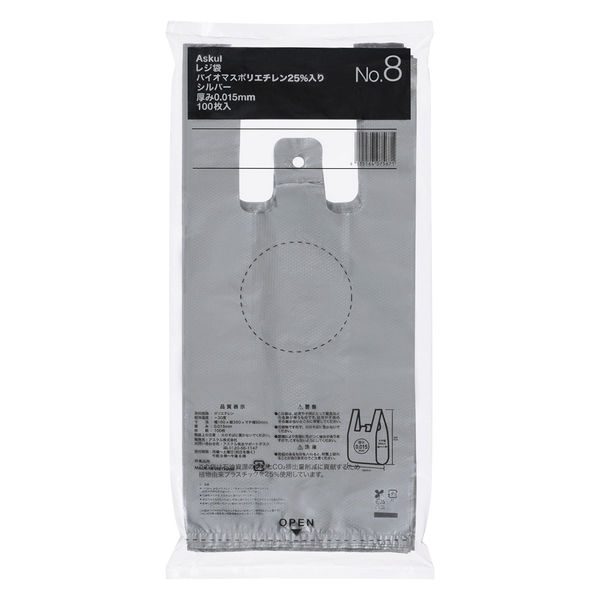 アスクル バイオマス25%入 レジ袋 シルバー 8号 1セット(1袋(100枚入)×30) オリジナル