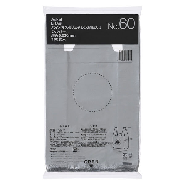 本商品:アスクル バイオマス25%入 レジ袋 シルバー 60号 1セット(1袋(100枚入)×30) オリジナル