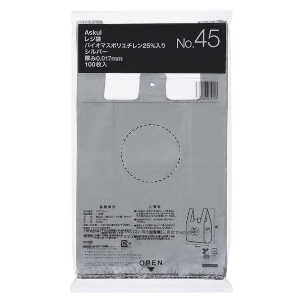 アスクル バイオマス25%入 レジ袋 シルバー 45号 1セット(1袋(100枚入)×30) オリジナル