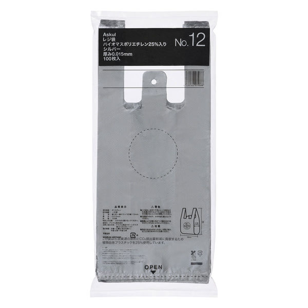 アスクル バイオマス25%入 レジ袋 シルバー 12号 1セット(1袋(100枚入)×30) オリジナル
