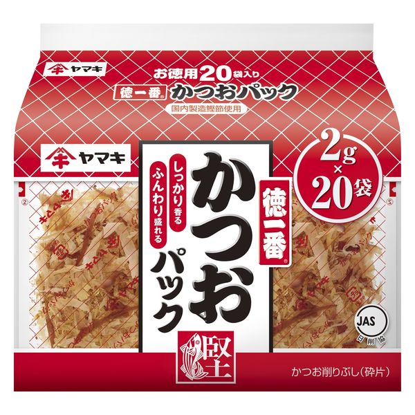 | 商品の特徴 | かつお節を薄く削ったあと、トッピングで使いやすいように、さらに細かく刻んでいます。かつお枯節に比べ焙乾香(かつお節を燻した時の香り)が強めのかつお節(荒節)を使用しました。1袋(2g)が20袋入っている大容量タイプのかつおパックです。 | ||
