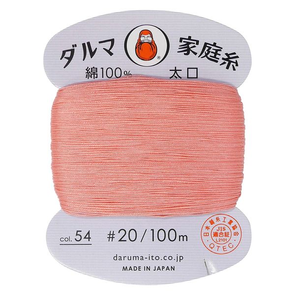 横田 DARUMA 手縫い糸 家庭糸 太口 #20 100m Col.54 ピンク 1200054 DRM120-54 1枚