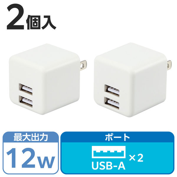 USB充電器 コンセント USB-A×2 12W コンパクト 白 EC-AC9112WH エレコム 1パック(2個入)
