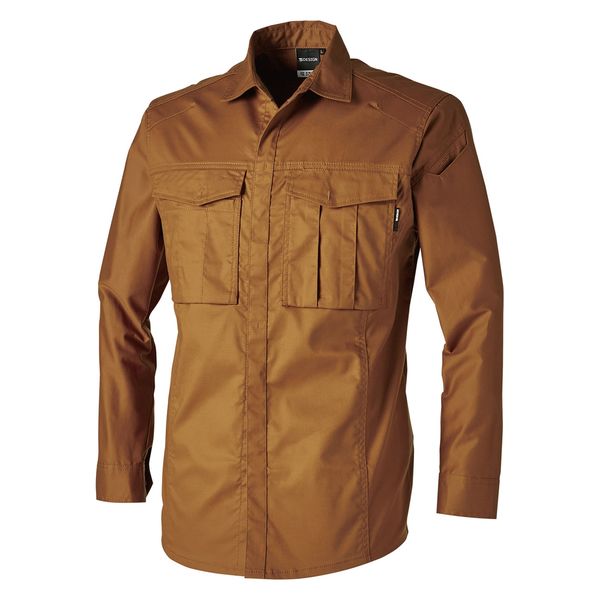 | 商品の特徴 | ●綿100%素材の風合いを持つ軽量素材使用春夏シーズン特化型綿高混率素材●軽量●ストレッチ性(ヨコ14%)●前立て+両胸フラップ仕様●マルチスリーブポケット付●袖口調整ボタン付●高品質の日本製素材●ポリエステル芯を綿で包んだストレッチ二層構造糸による新素材を使用 | ||