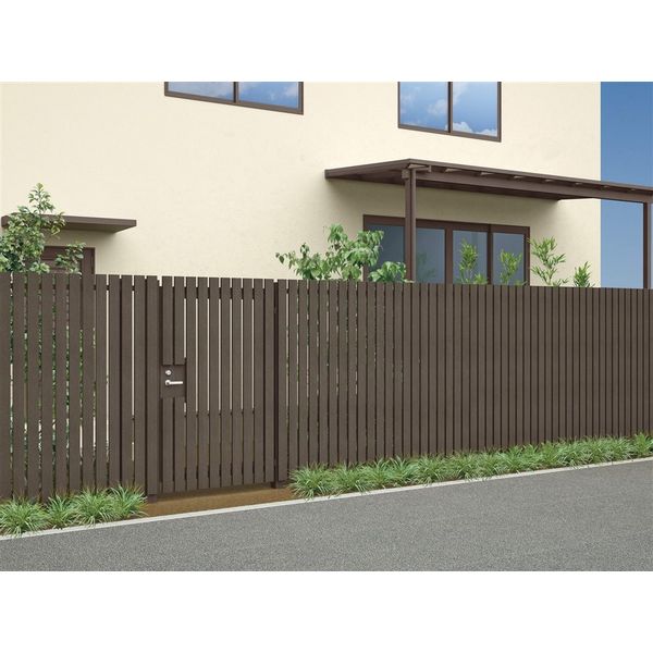 ●特徴:間仕切りや裏口に。●特徴:植栽が映える木調カラーの袖門扉。