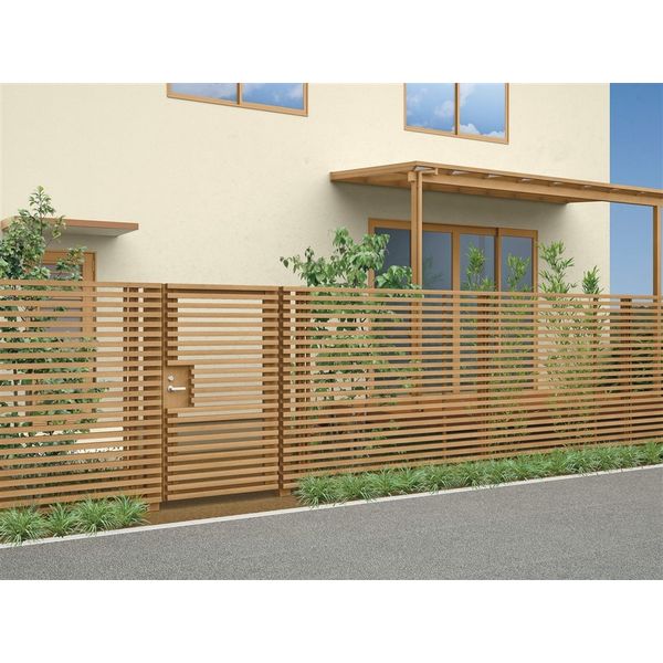 ●特徴:間仕切りや裏口に。●特徴:植栽が映える木調カラーの袖門扉。