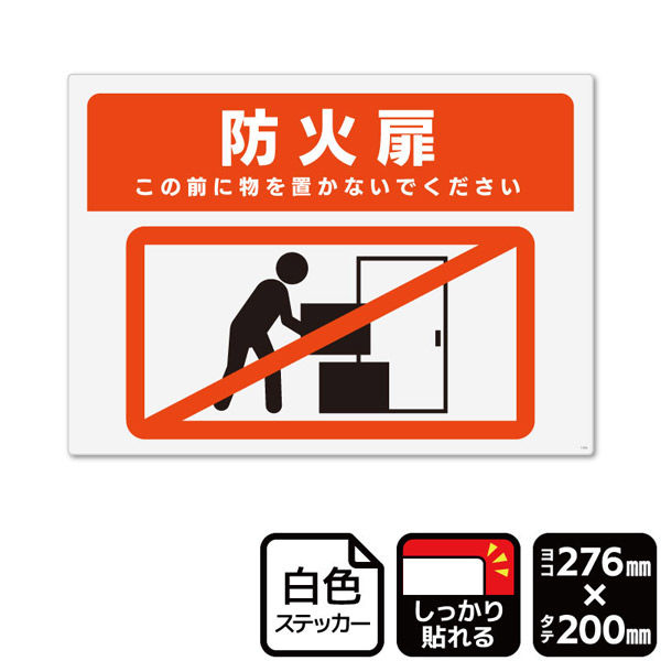 KALBAS 標識 防火扉 ここに物を置かないでください ステッカー強粘 276×200mm 1袋(2ラベル入) KFK1254(直送品)