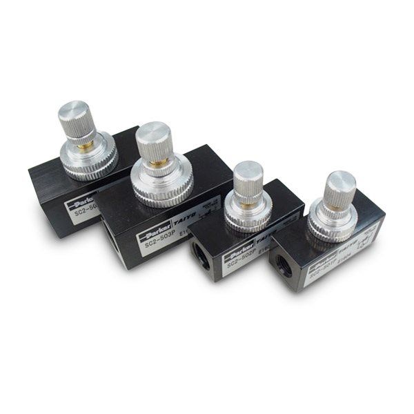 | 商品の特徴 | ●小型アクチュエータの速度制御に最適です。●流量の微調整が容易に行えます。●パネル取付が可能です。●流量の値は一次側圧力0.5MPaのときの流量です。●スピードコントローラ(SC2-5)シリーズ画像です。 | ||