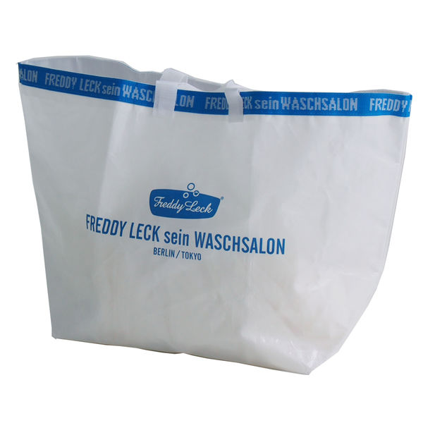 汚れや水に強く、軽くて丈夫ポリプロピレン製。清潔感のあるホワイトとブルーのカラーが爽やかなランドリーバッグ。買物でのエコバッグやアウトドアなど、様々なシーンで使えます。