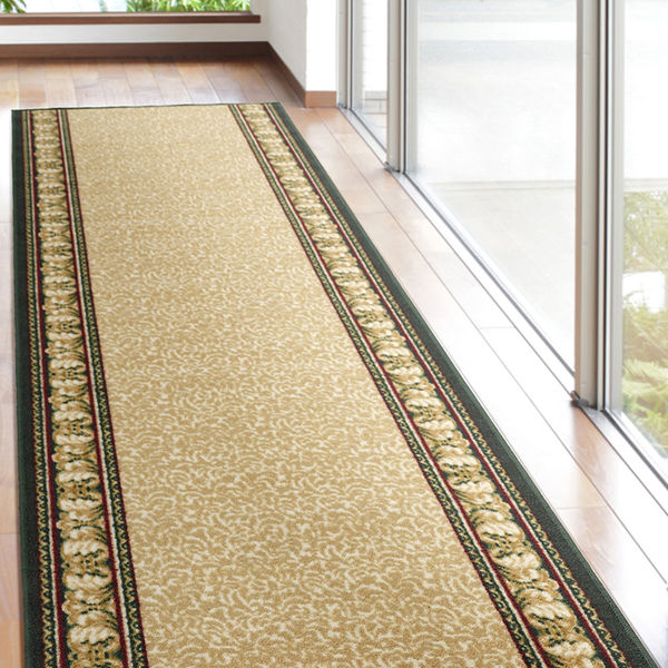 シンプル且つ端の優雅なデザインが廊下を華やかに演出。階下への防音効果も兼ね備えたロングカーペットです。☆ 特徴 ☆ 1.手洗いできるから、いつでもきれいをキープ。キッチンマットなどとして水回りにもおすすめです。2.短めのパイルなので、掃除機がかけやすい。3.硬めの生地で、毛がへたりにくく長持ちしやすい。4.裏面は、床を傷つけにくい不織布貼り。5.裏面は、滑りにくい加工付き。6.スペースに合わせて選べるよう多サイズ展開。7.カラーは、上品なグリーンと落ち着いたベージュをご用意。