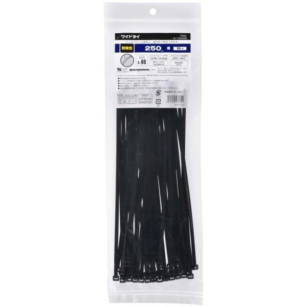 オーム電機 結束バンド 幅広ロックタイ 250mm 50本入り OHM WLT-250W50