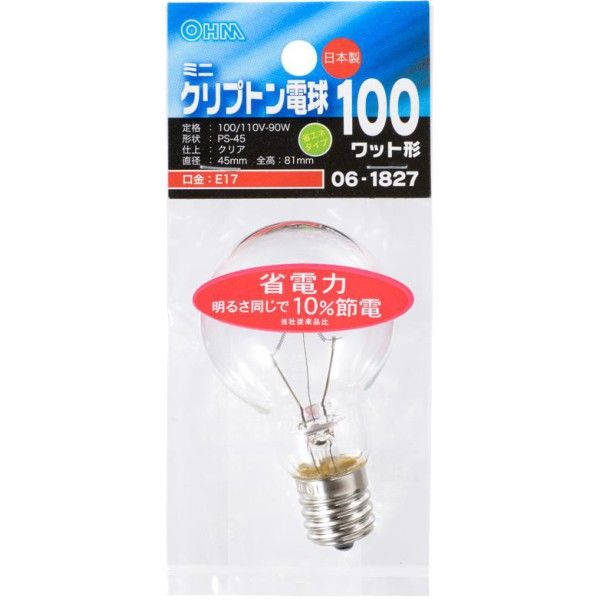 オーム電機 ミニクリプトン電球 E17 100W OHM LB-PS4700KJ