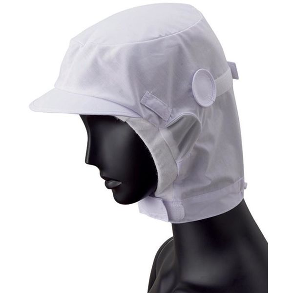 着用時の暑さを軽減する綿素材のショートフード。額はパイル素材で落髪・ズレ防止と汗止めの効果。
