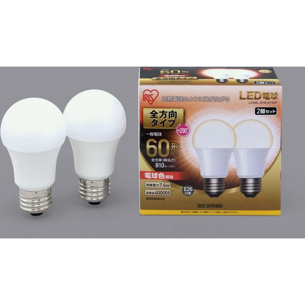 トップランナー制度対応、2017年度省エネ法目標基準値達成のLED電球です白熱電球のように全方向に明るい全方向タイプなので、リビング・ダイニング・キッチン・脱衣所などの照明に最適なLED電球です。口金サイズがE26口金なので、照明器具を替えることなくご使用いただけます。密閉形器具にご使用可能です。断熱材施工器具にはご使用できません。5年保証で長寿命約40000時間の、ランプ交換の手間が少ないLED電球です。光色は明るい雰囲気を演出する「昼白色相当」と温かみのある「電球色相当」の2種類です。