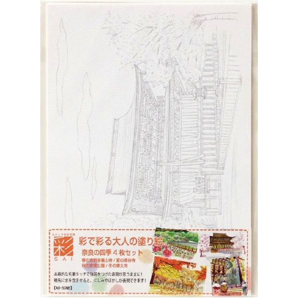 あかしや水彩毛筆【彩】(カラー筆ペン)で楽しめる大人の塗り絵です。歴史ある奈良の風景・名所の四季を下絵にしました。