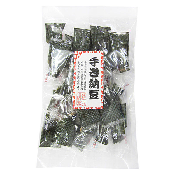 手巻き寿司風に巻いたのりの中に乾燥納豆とあられをつめた納豆通の逸品。