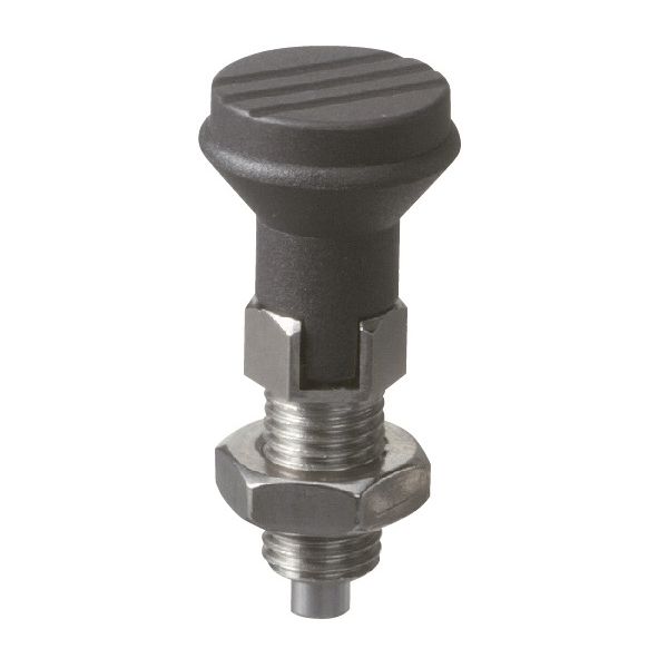 RoHS指令適合製品です。インデックスプランジャーをプレートへ完全にねじ込んで使用される場合は、プレート側のタップ穴に面取りを施してください。ノーズロック型はノブを引いた状態で90°回転するとノーズが引っ込んだ状態でロック(固定)できます。ノブを引くとノーズが引っ込み位置決め解除が簡単にでき、手を放すとノーズは内蔵スプリングによって元の状態に戻る、ハンド操作のスプリングプランジャーです。