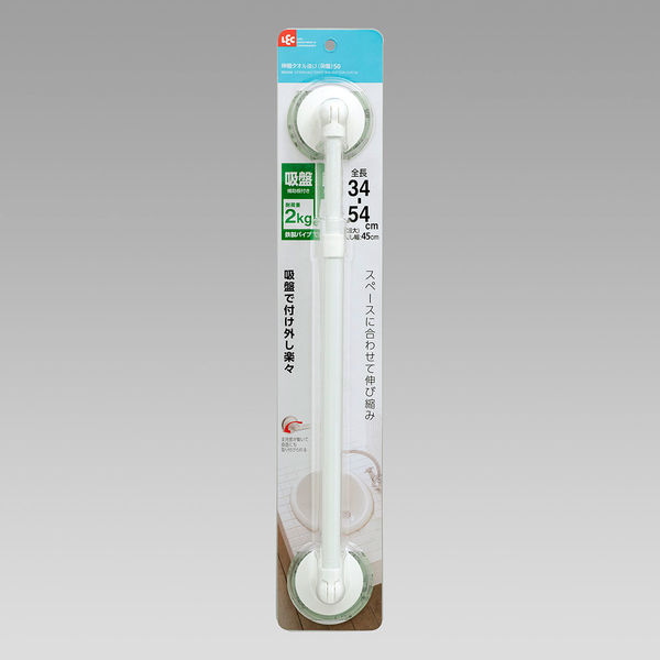 丈夫でさびにくく、スタイリッシュなステンレスタオルバー。干し幅33から53cmまで伸縮するタオルバー。【伸縮ステンタオル掛け(レバー式吸盤)50 (B00037) 】