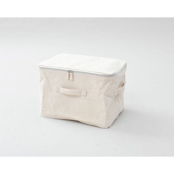 ナチュラルな風合いのコットン収納ボックス3個セット。 カラーボックスにぴったりおさまるサイズで便利。フタ付きタイプはダブルジッパーで開け閉めしやすい、ファスナー式。
