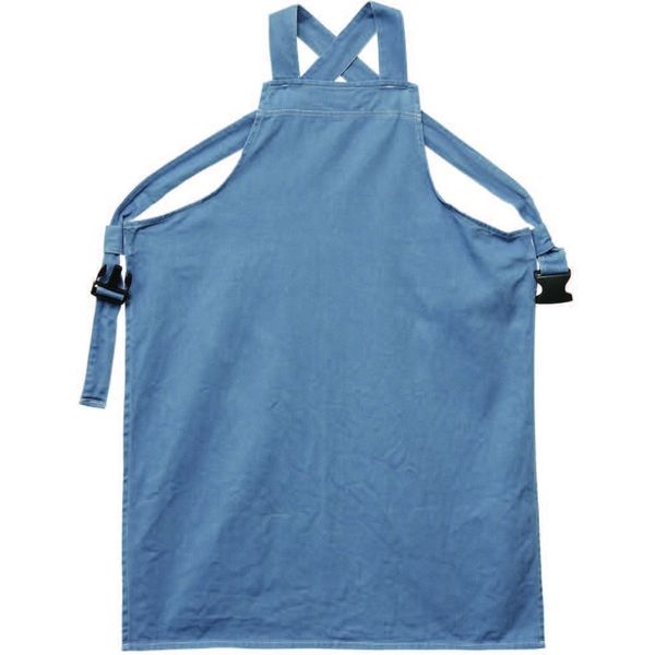燃え広がりにくい難燃加工生地 ずれにくい幅広肩ひも 手袋でも外せる大きめバックル しゃがんだ作業でもしっかりカバー