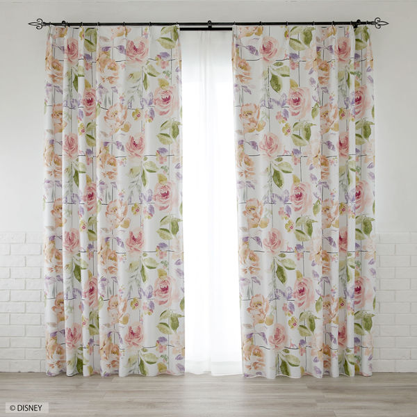 スミノエ DISNEY セミオーダーカーテン ミッキー ローズグリッド アイボリー 幅2500mm