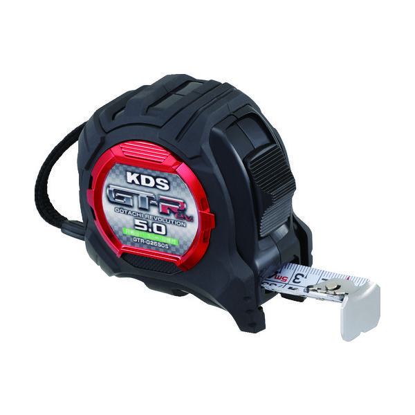 水平保持力2.6m以上の剛立厚テープを採用しています。目盛が10倍長持ちする高耐久ナイロンコート仕様です。厚み1.5倍で強度2.5倍の厚爪仕様です。テープの裏面は高さがみやすい正縦数字を採用しています。本体と部材を保護しフィット感に優れたGプロテクター仕様です。JIS1級 両面メートル目盛 ベルトフック付