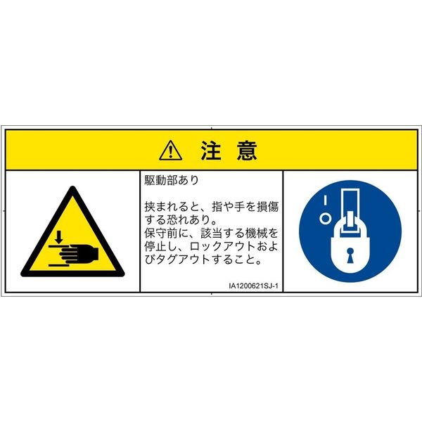 PL警告表示ラベル(ISO準拠)│機械的な危険:はさまれ│IA1200621│注意│Sサイズ
