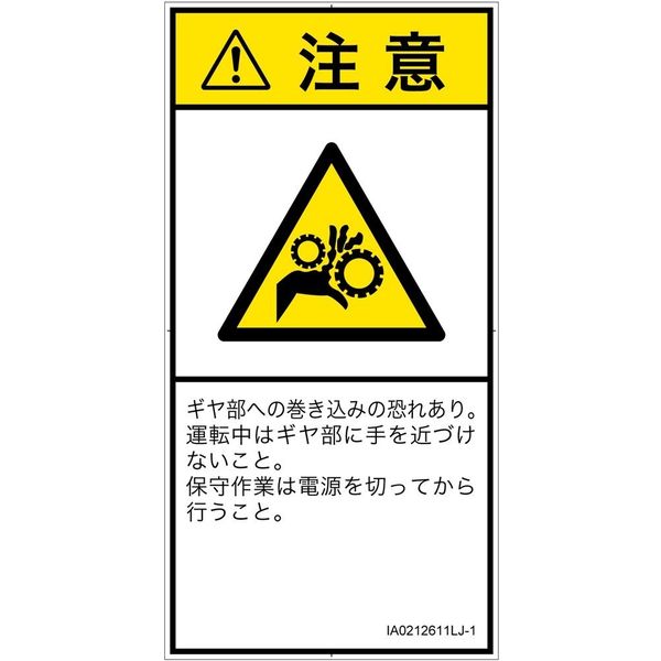 PL警告表示ラベル(ISO準拠)│機械的な危険:引き込み(ギア)│IA0212611│注意│Lサイズ